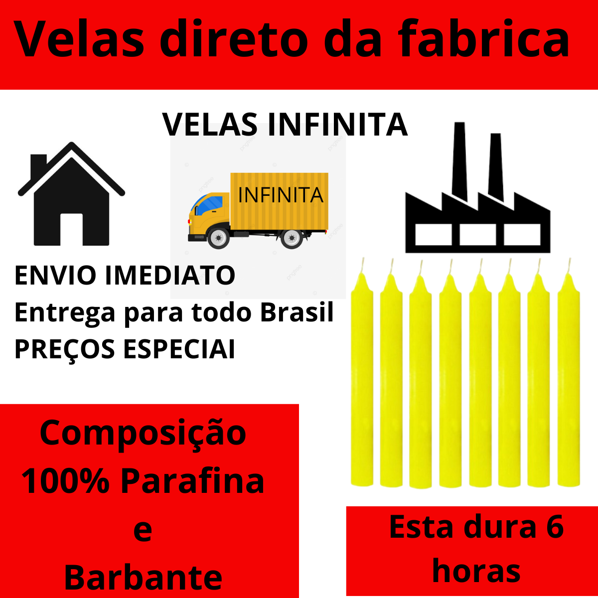 A Fábrica Infinita Velas foi criada para atender um publico exigente que gosta de qualidade e preço justo.